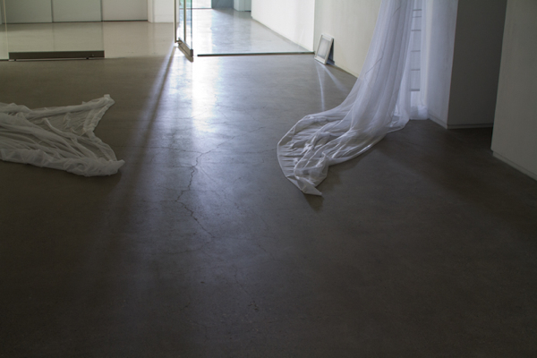 落ちてしまっていて何の役にも立っていないカーテン。ウェブという、プライベートとパブリック、自己顕示欲とのぞき趣味が、ぼやけた世界。カーテン、幕が強引に上がり、または引きずりおろされ、自分だけの世界から、突如もっと広大なスペースの中へと放り出される様な場所。そこでは、どちらも外側になってしまい、両側にいる全てのものが、強制的に主体となってしまいます。